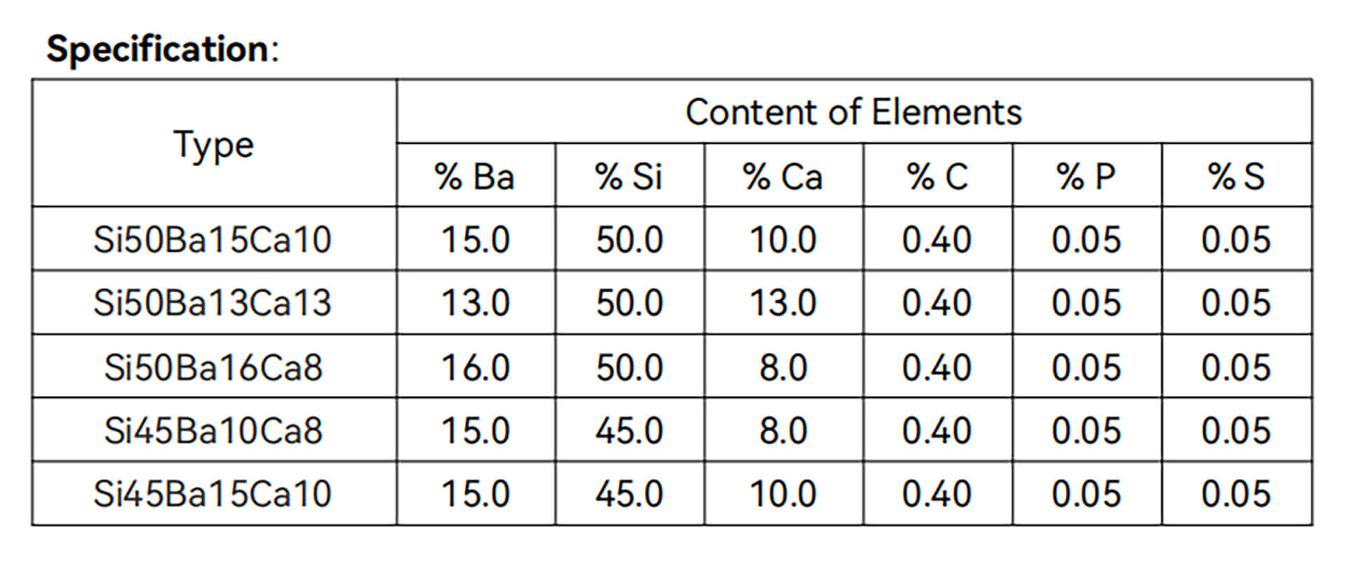 Silicon Barium Calcium Grit Sand 0 mm - 10 mm, Silicon Barium Calcium Lump Block 10 mm - 100 mm, Tailor-made size, Silicon Barium Calcium Briquette Ball 40 mm - 60 mm.