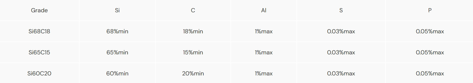 High Carbon Silicon Powder 16 mesh - 240 mesh, High Carbon Silicon Grit Sand 1 mm -10 mm, High Carbon Silicon Lump Block 10 mm - 200 mm, Tailor-made size, High Carbon Silicon Briquette Ball 40 mm - 60 mm.
